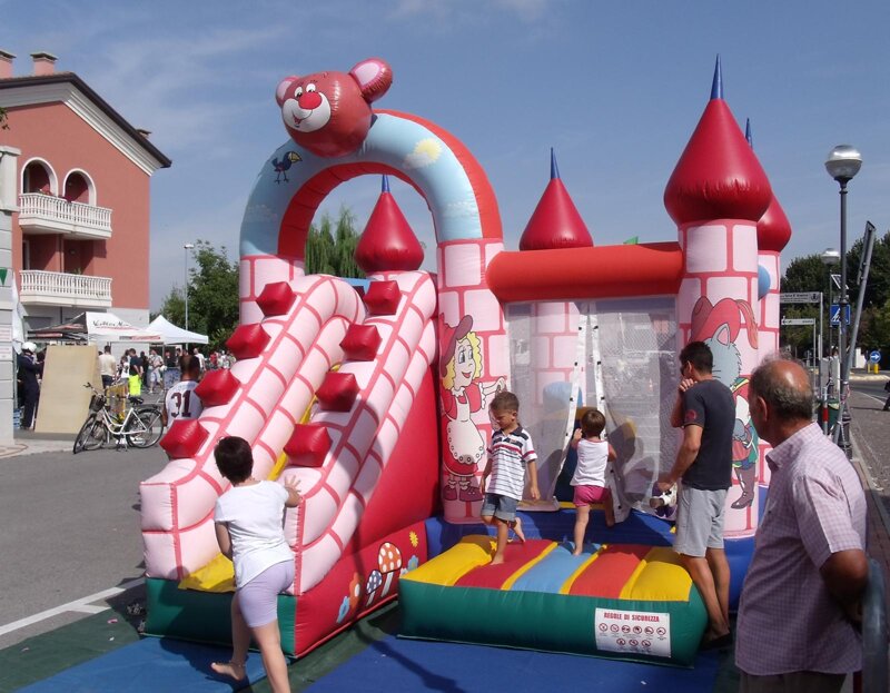Grazie al suo scivolo e al saltarello , alle tue feste il castello è il più desiderato.
